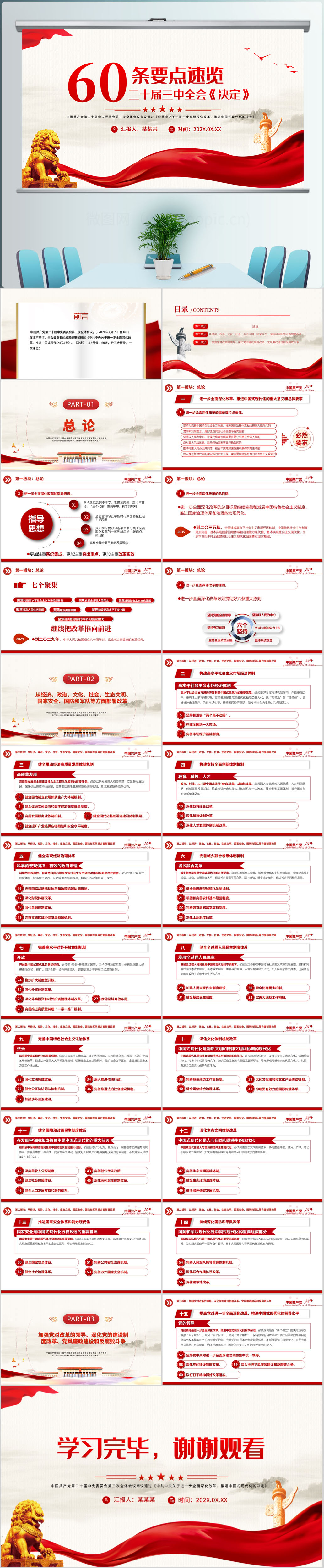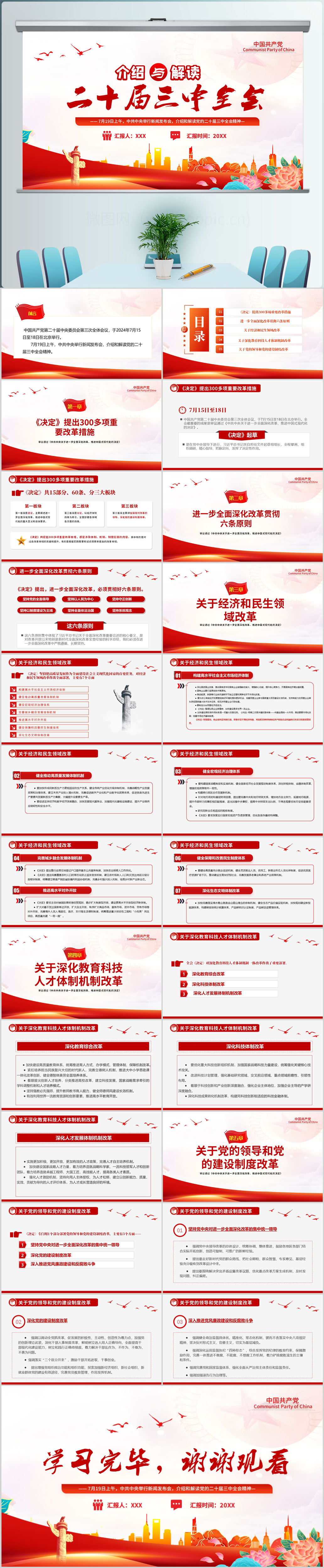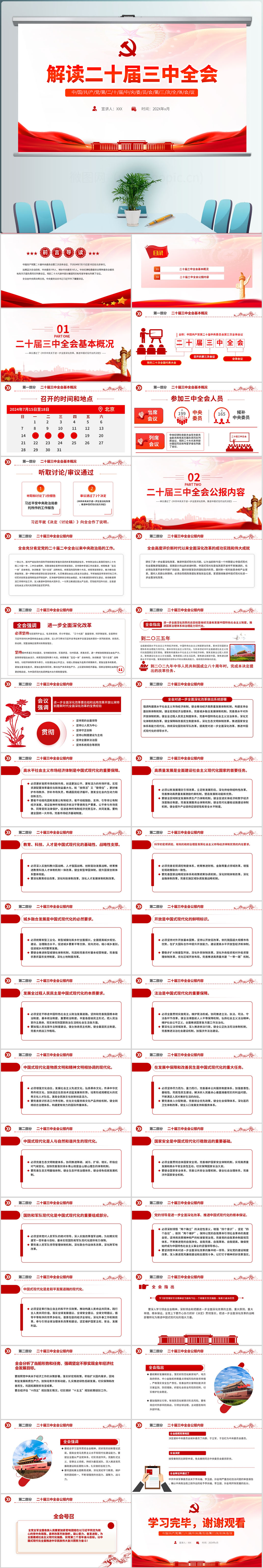 二十届三中全会精神介绍与解读学习ppt模板(内含WORD演讲稿)