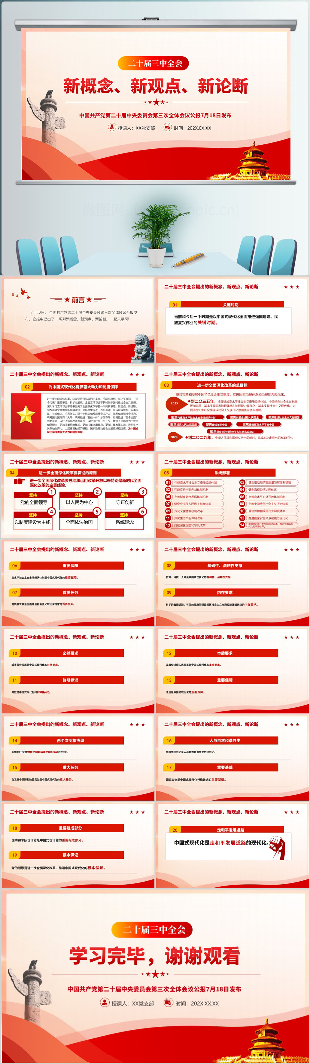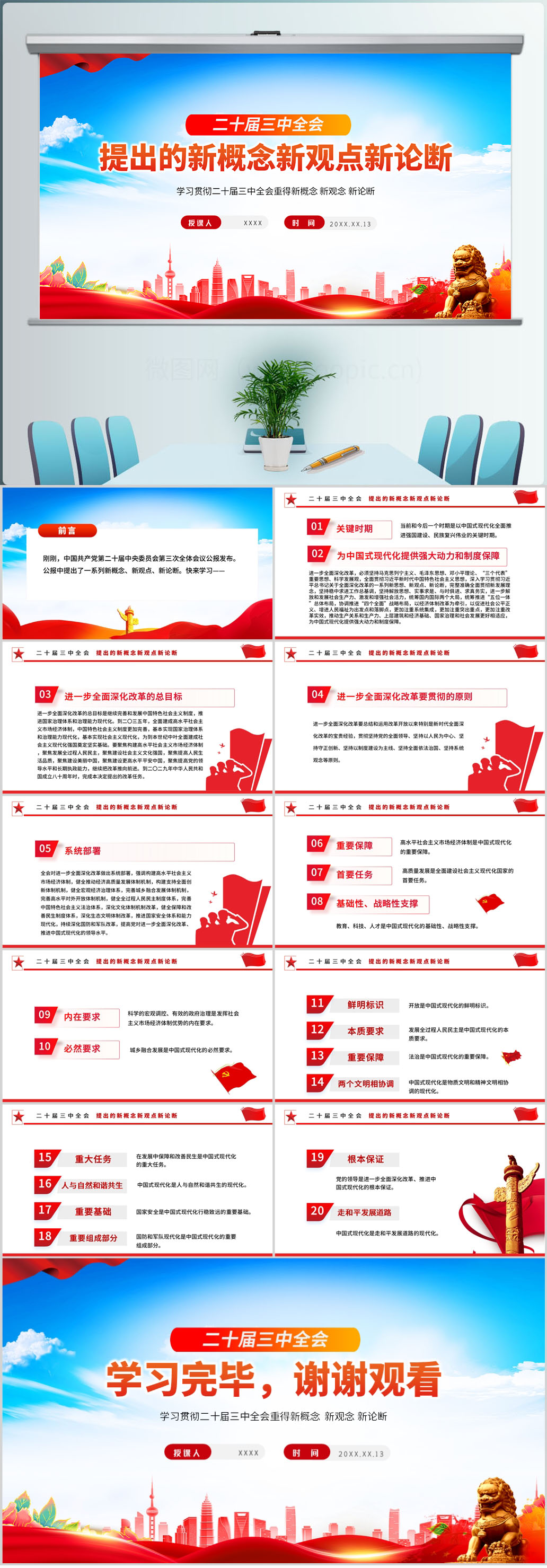 二十届三中全会提出的新概念新观点新论断党课PPT模板(内含WORD演讲稿)
