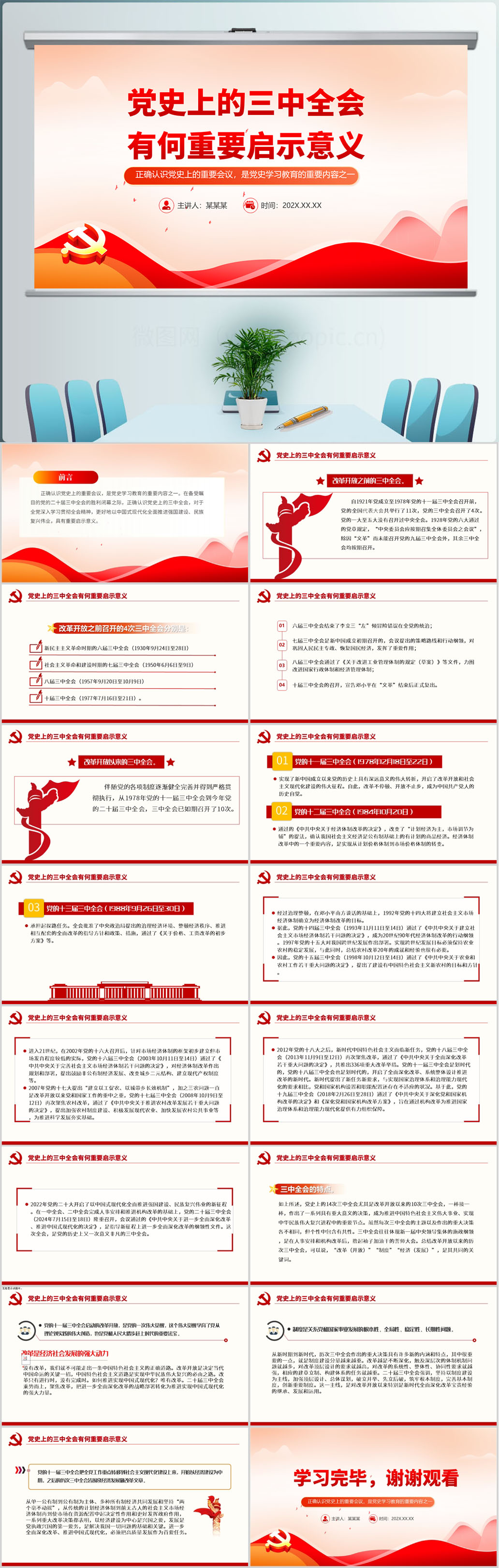 学习历史上的三中全会有何重要启示意义党课PPT模板(内含WORD演讲稿)