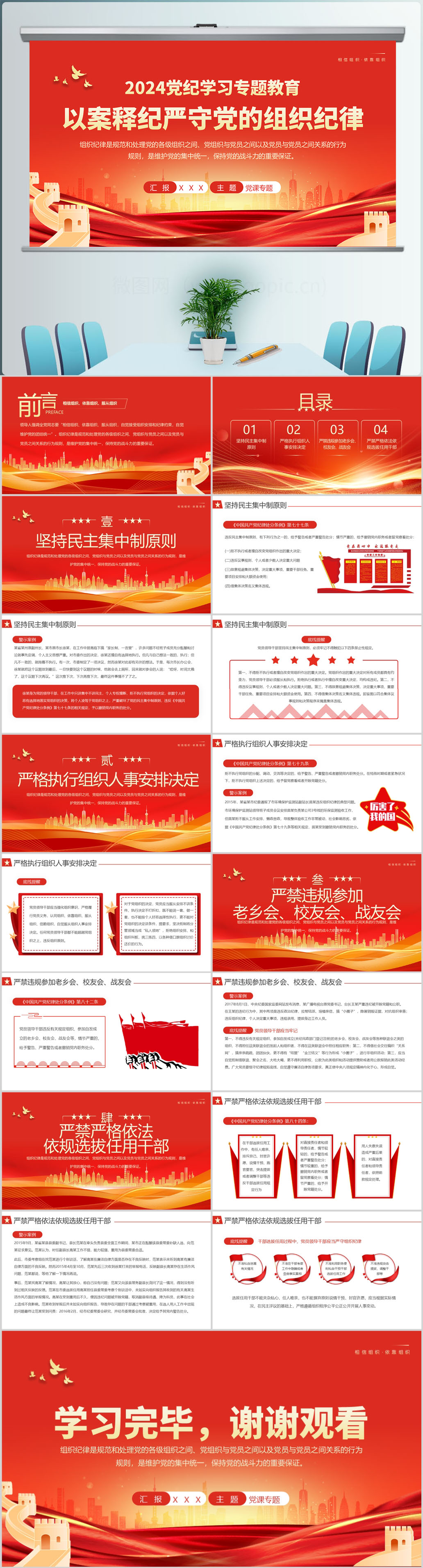 红色党纪学习教育以案释纪严守党的组织纪律ppt模板