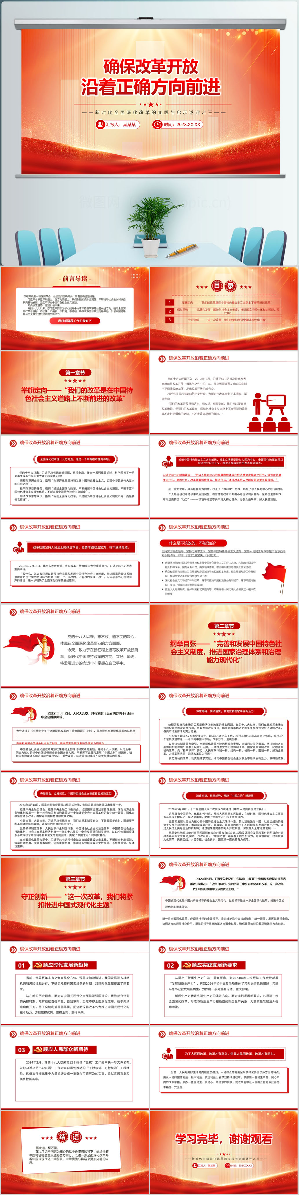 2024确保改革开放沿着正确方向前进全面深化改革的实践与启示党课ppt模板(内