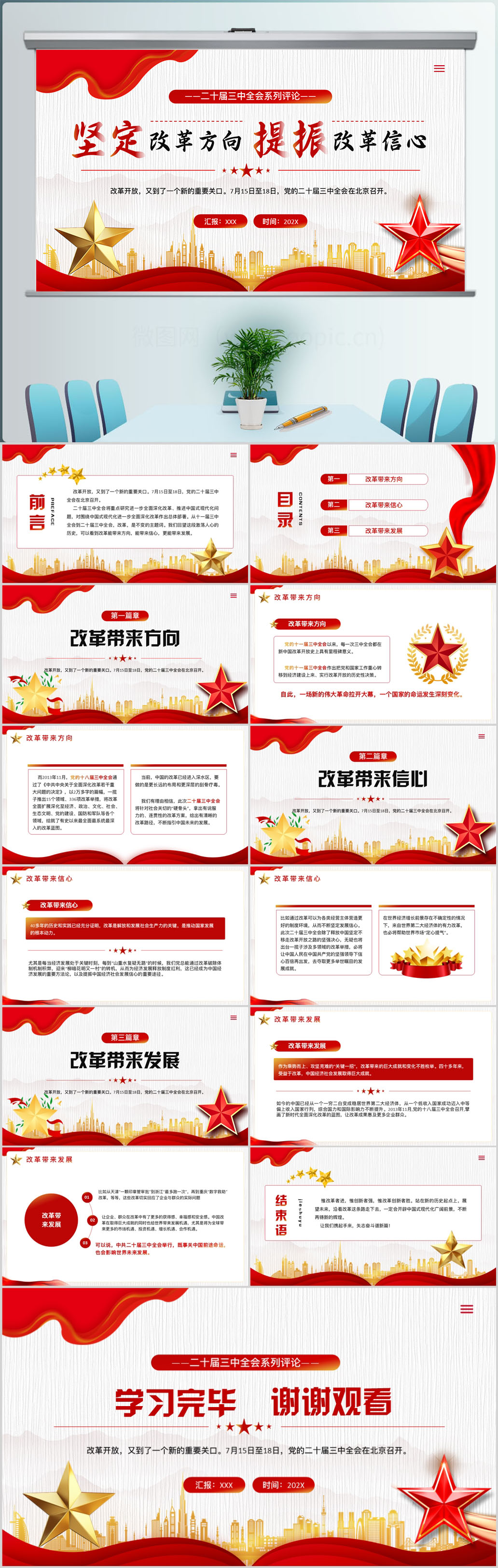 2024二十届三中全会坚定改革方向提振改革信心ppt模板(内含WORD演讲稿)