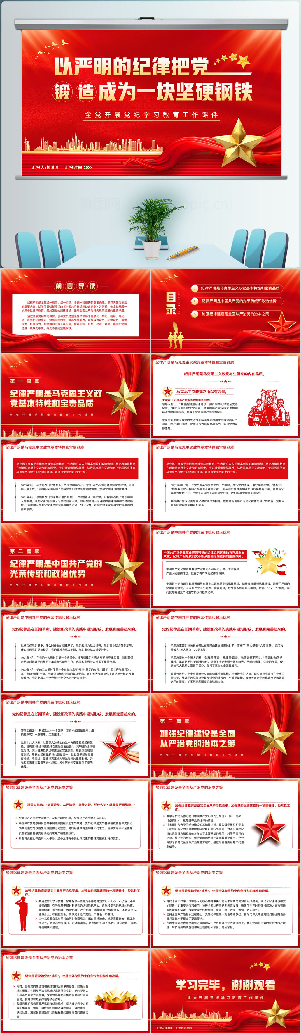 学习严守党的廉洁纪律教育党课PPT模板(内含WORD演讲稿)