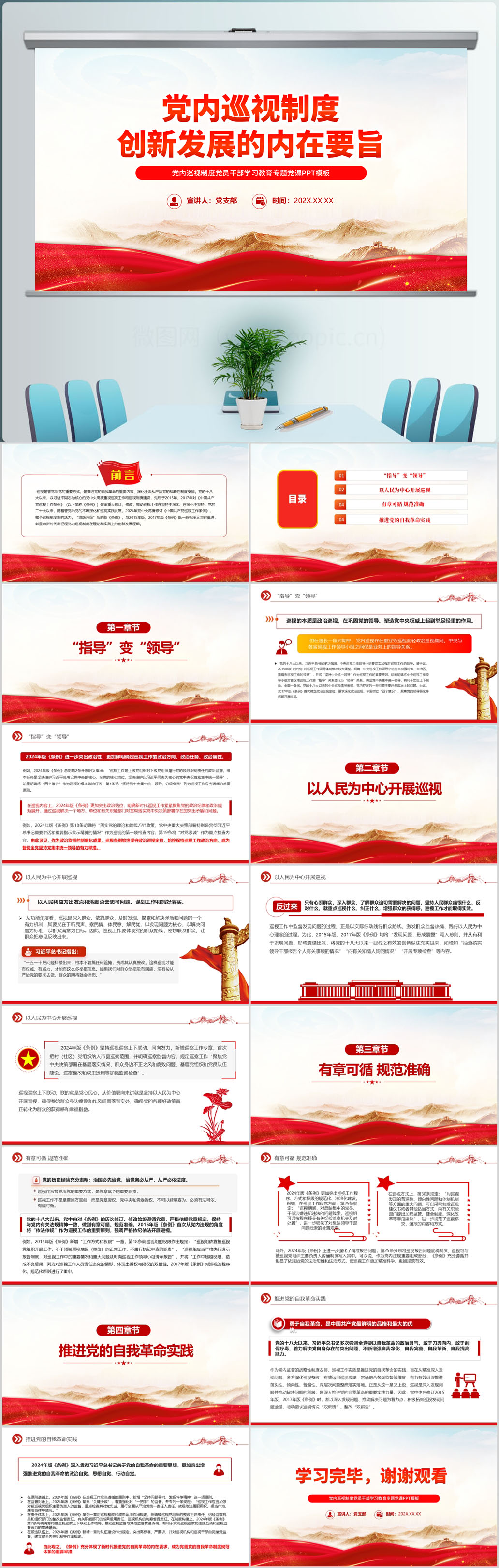 党内巡视制度创新发展的内在要旨党员教育ppt模板(内含WORD演讲稿)