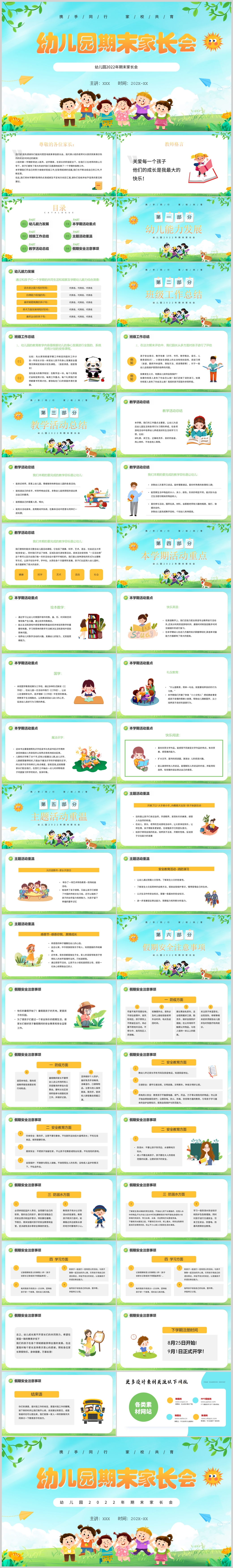 2022年卡通幼儿园小学生期末家长会课件ppt模板