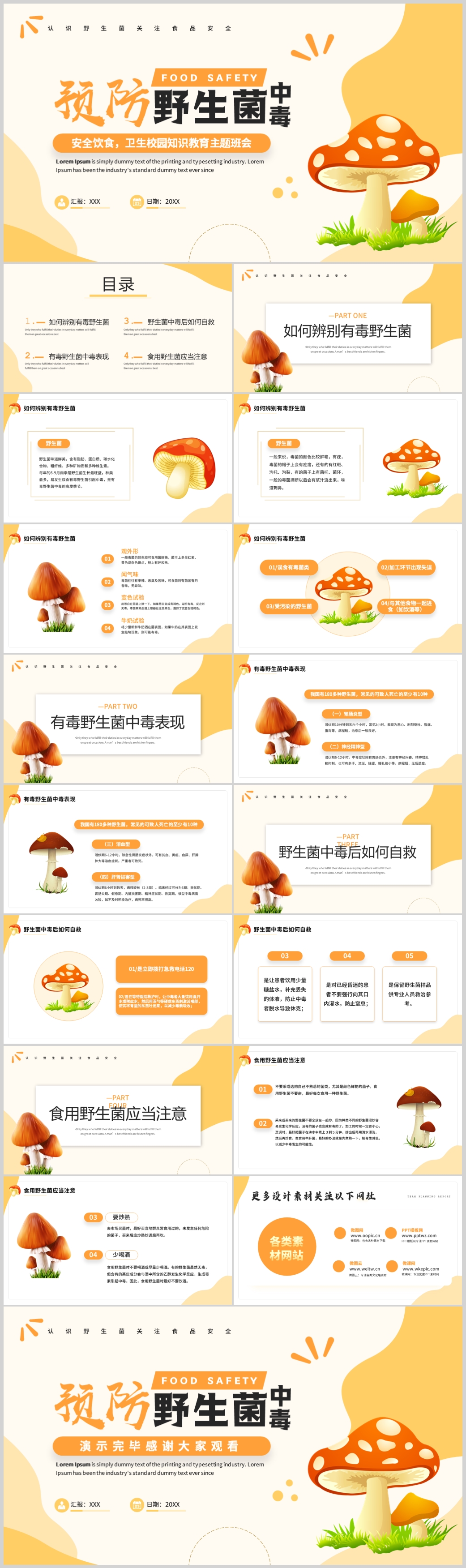 卡通暑假安全饮食预防野生菌中毒主题班会课件PPT模板