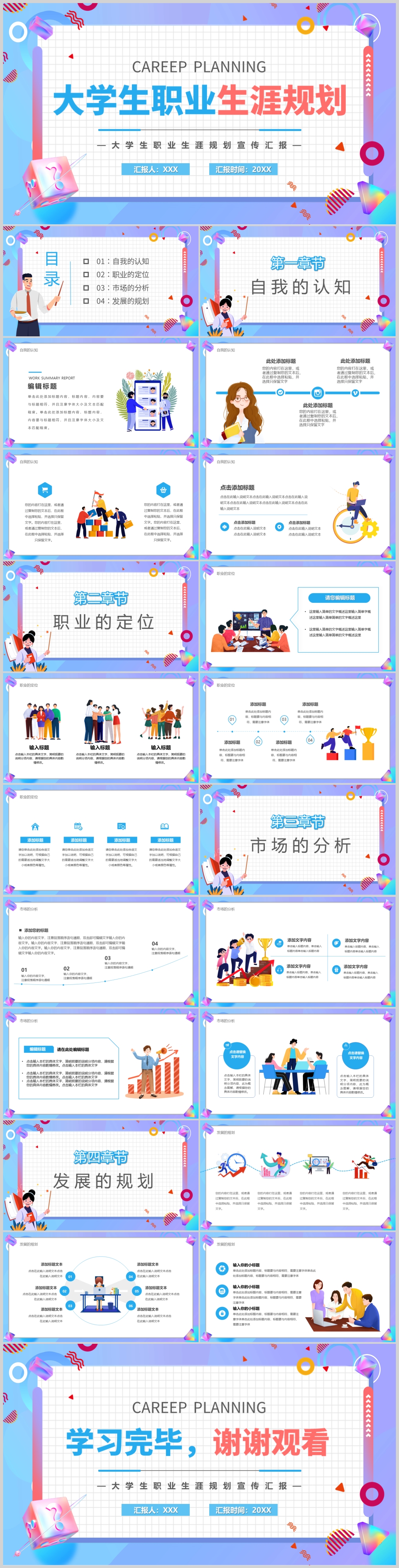 简约风大学生职业生涯规划书述职报告课件PPT模板
