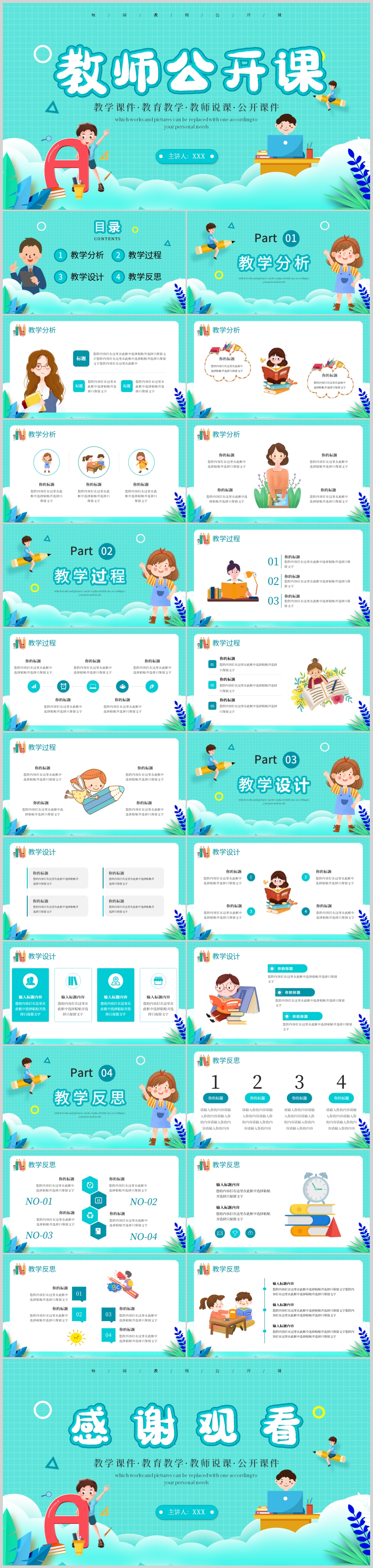 卡通教师教育课件读书分享阅读公开课教师说课ppt模板