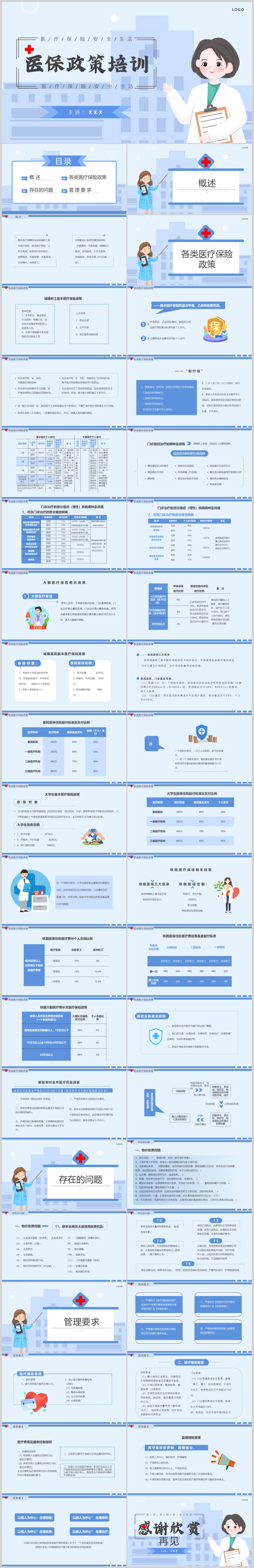 蓝色医保政策各类医疗保险政策培训课件PPT模板