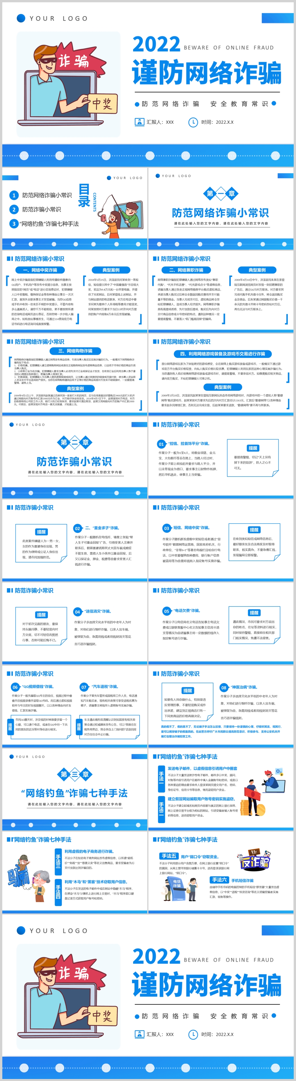 2022预防谨防网络诈骗安全教育常识课件培训PPT模板