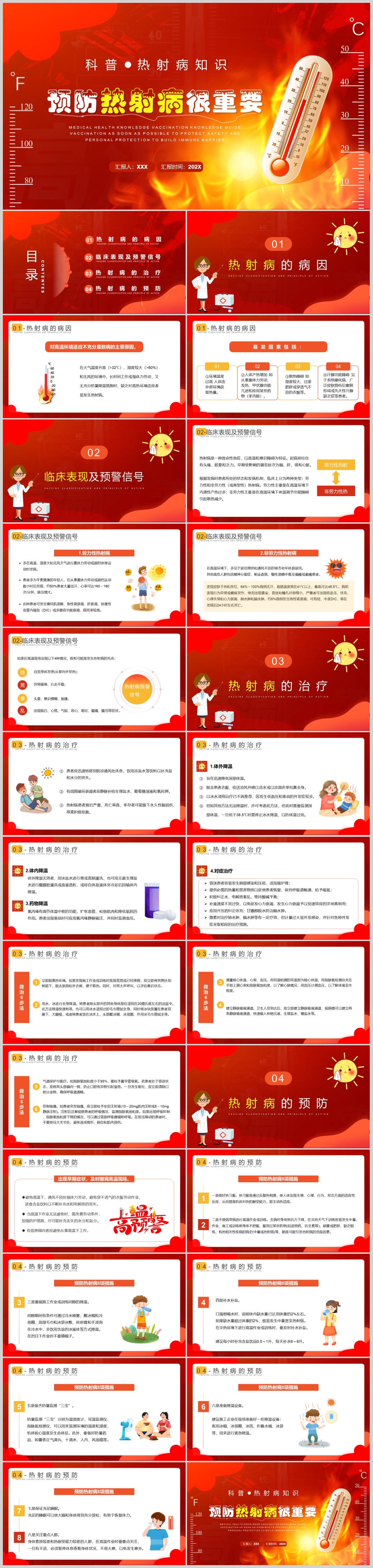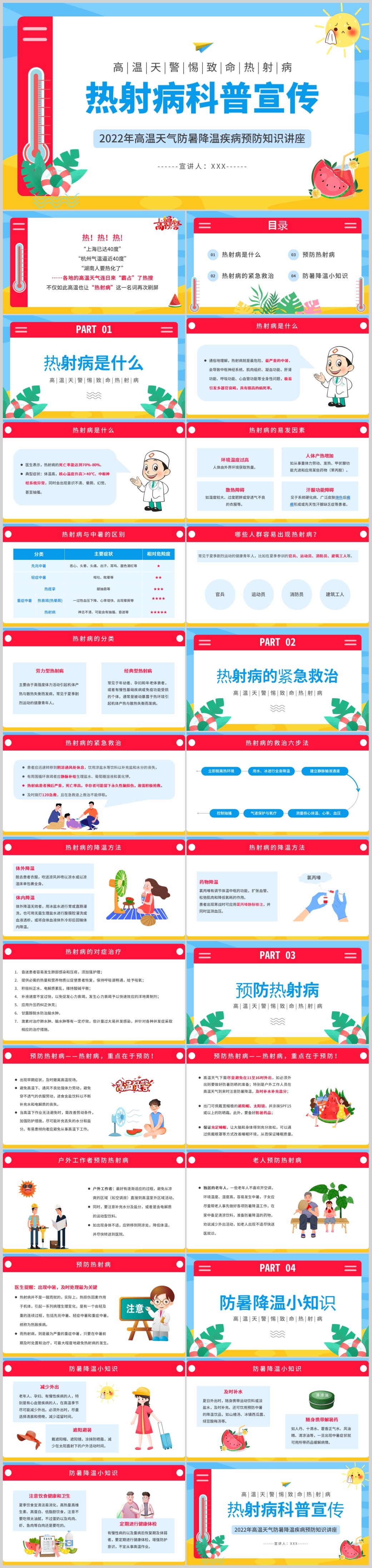 红色热射病科普知识宣传预防暑期高温中暑防高温培训PPT模板