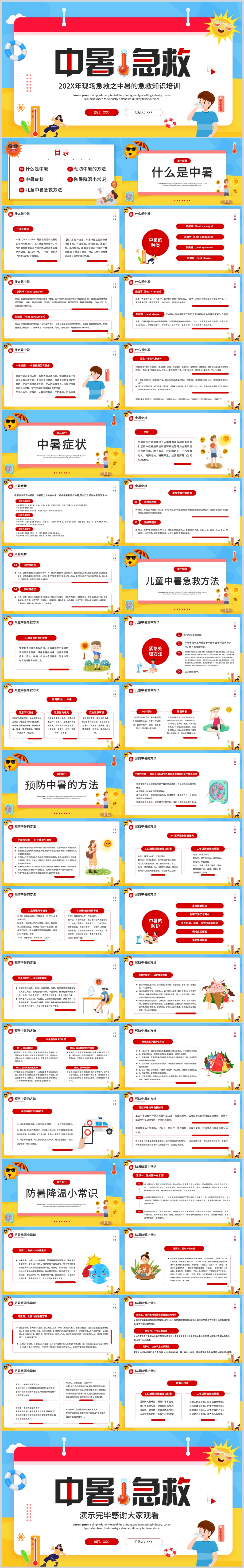 2022年现场急救之中暑的急救知识培训课件PPT模板