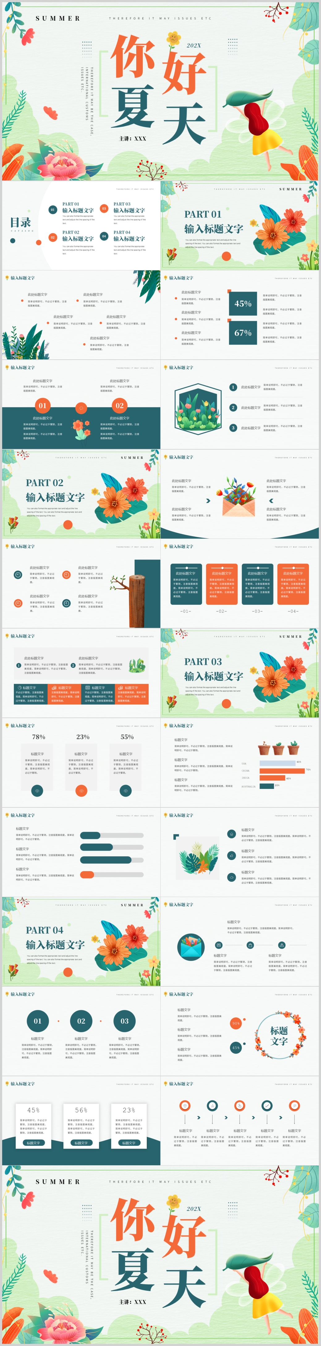 夏天夏季你好夏天工作总结年中总结PPT模板