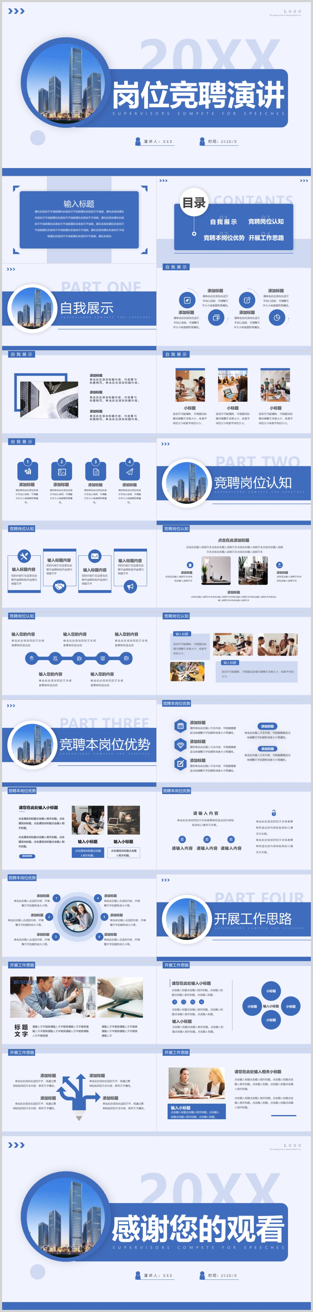 蓝色岗位竞聘蓝色面试自我介绍晋升课件PPT模板