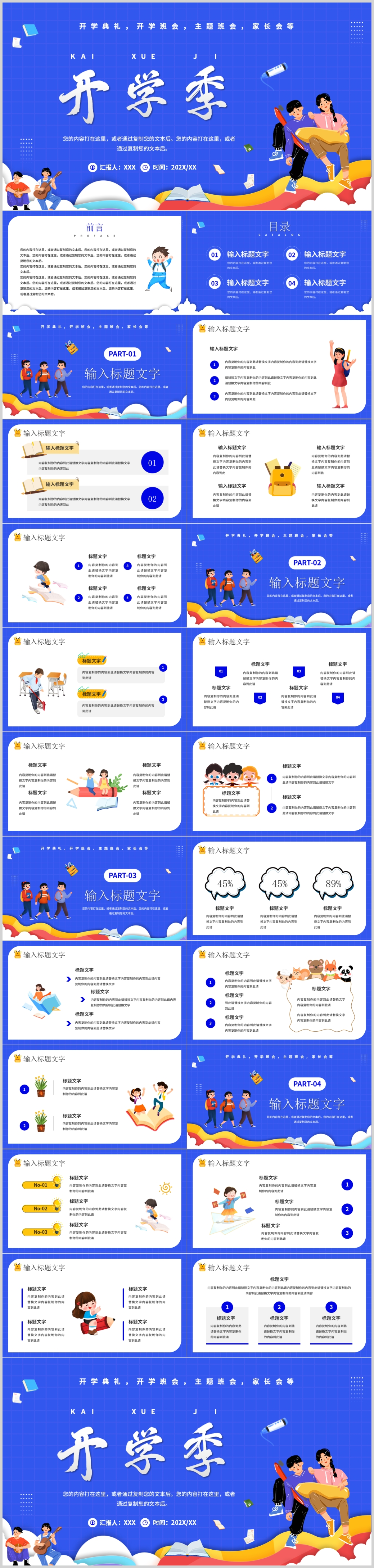 蓝色秋季开学典礼开学第一课主题班会课件PPT模板