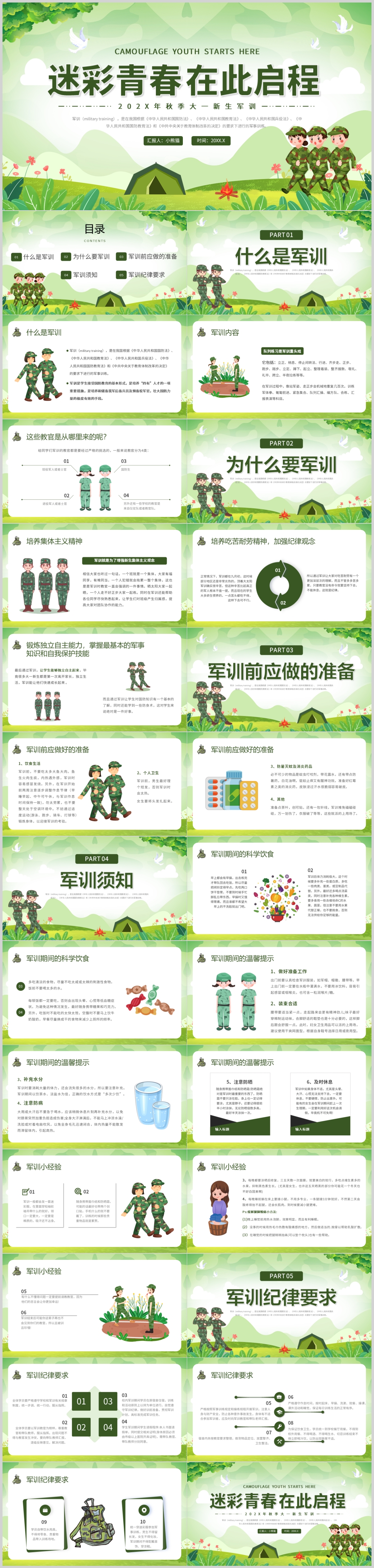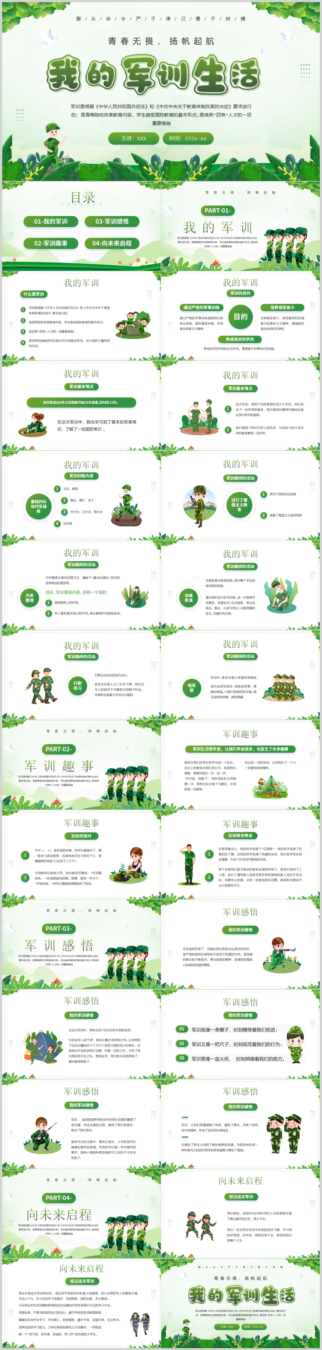 绿色夏日营开学第一课我的军训生活军训ppt模板