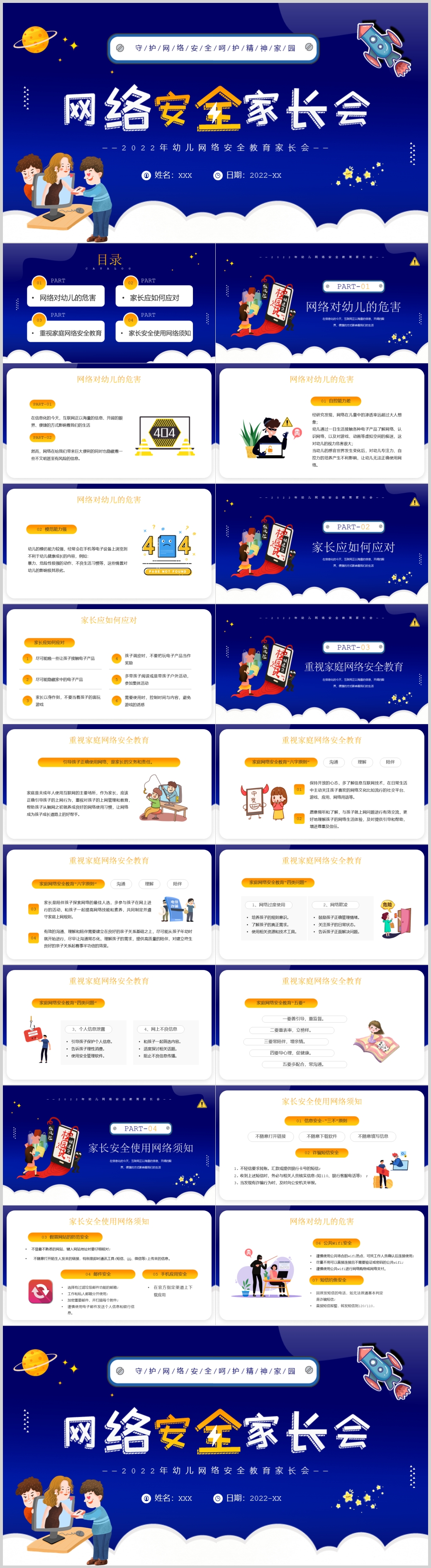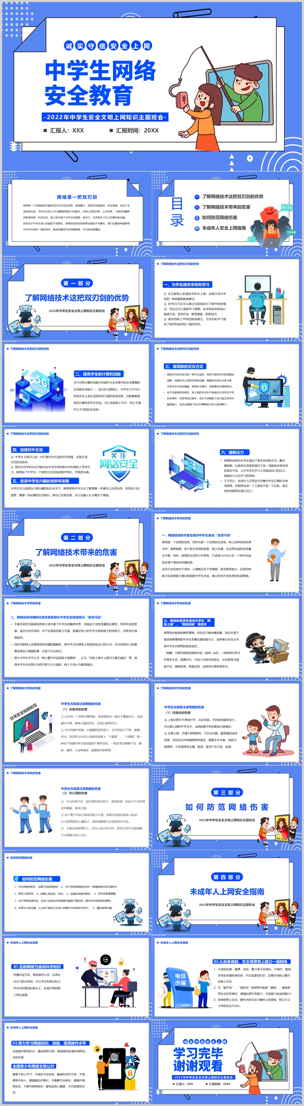 蓝色网络安全教育中小学主题班会课件PPT模板