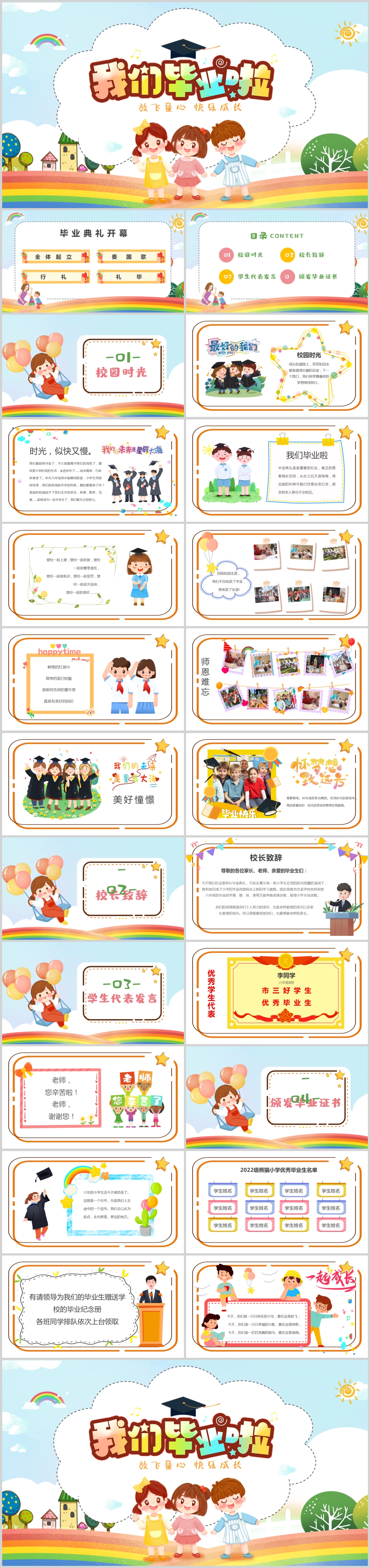 卡通风2022我们毕业啦中小学生毕业典礼课件PPT模板