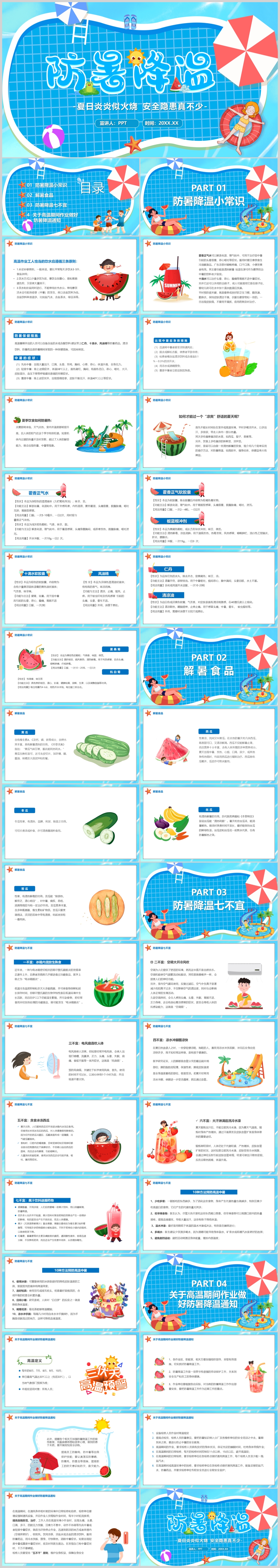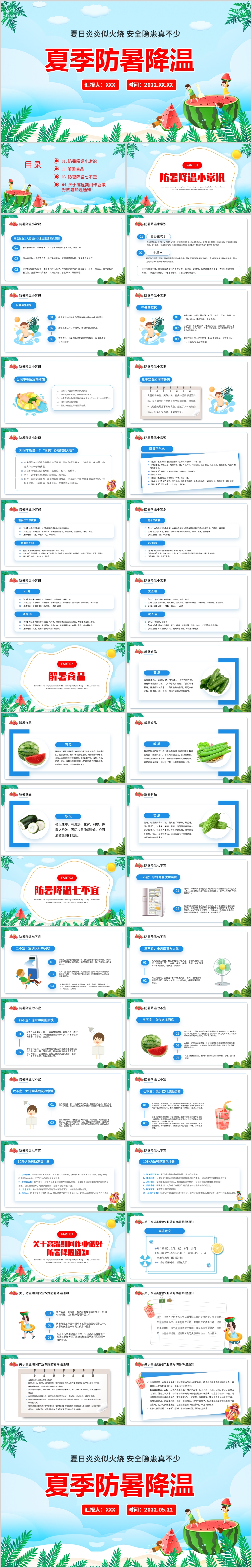 幼儿园中小学夏季预防高温中暑中防暑降温班会PPT模板