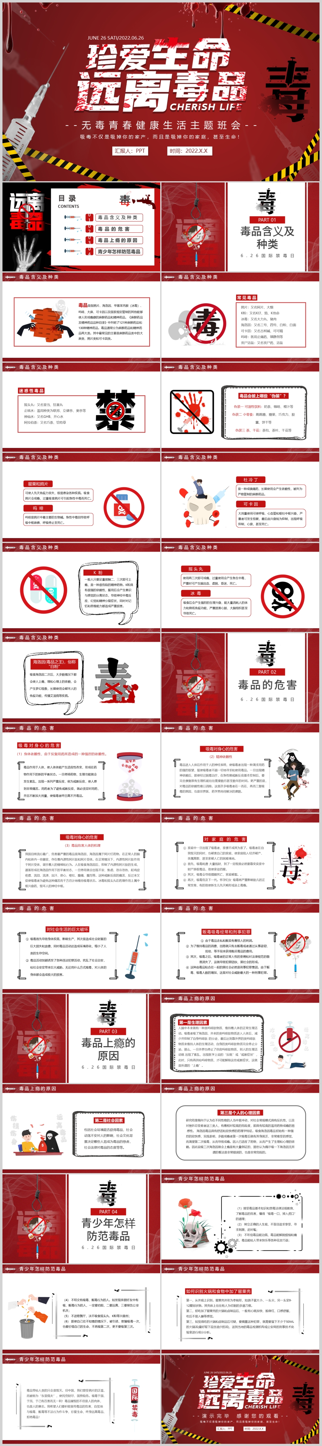 626禁毒日真爱生命远离毒品健康生活主题班会ppt模板
