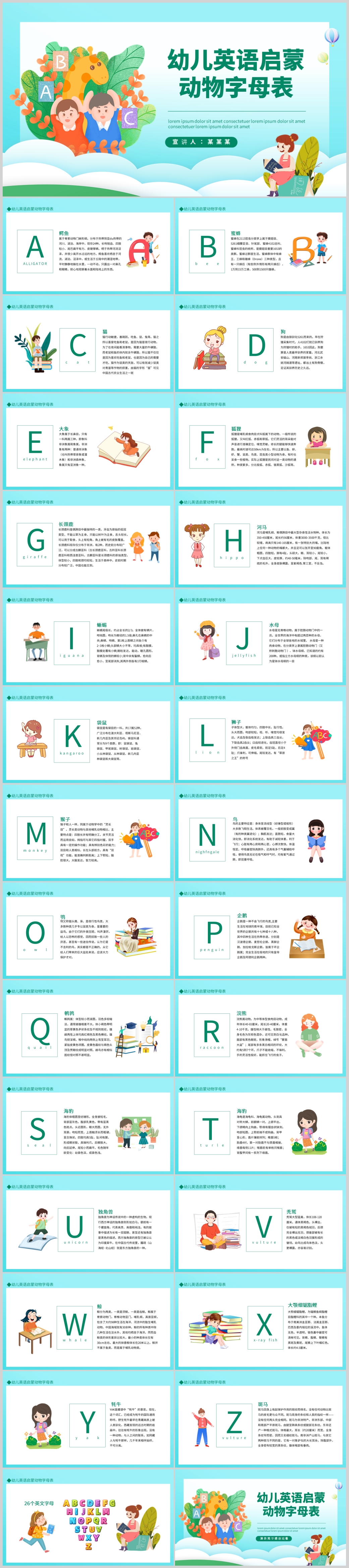 幼儿二十六个英语启蒙动物字母表主题班会PPT模板