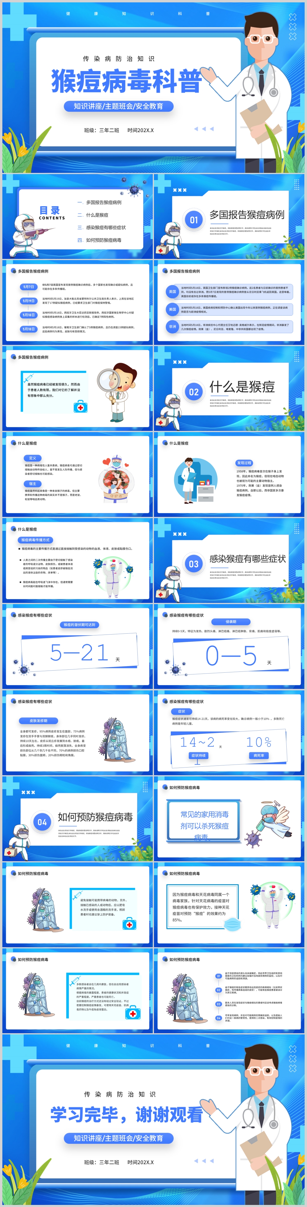 卡通猴痘健康生活猴痘传染性疾病预防知识ppt模板