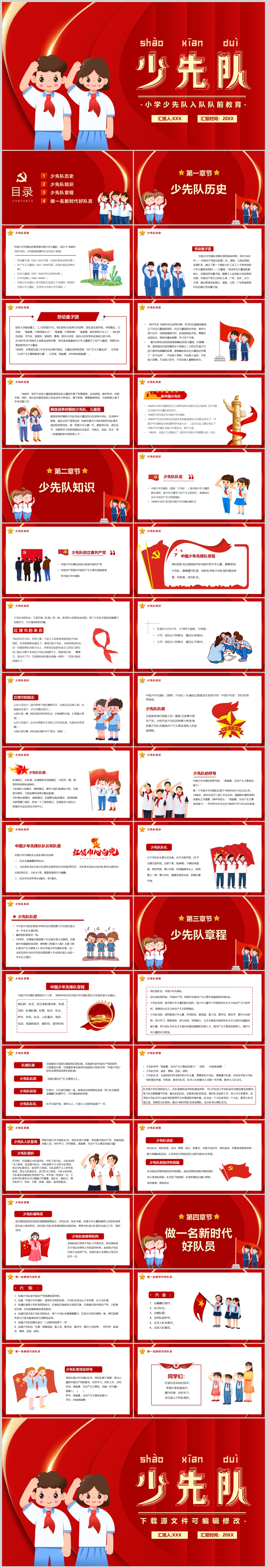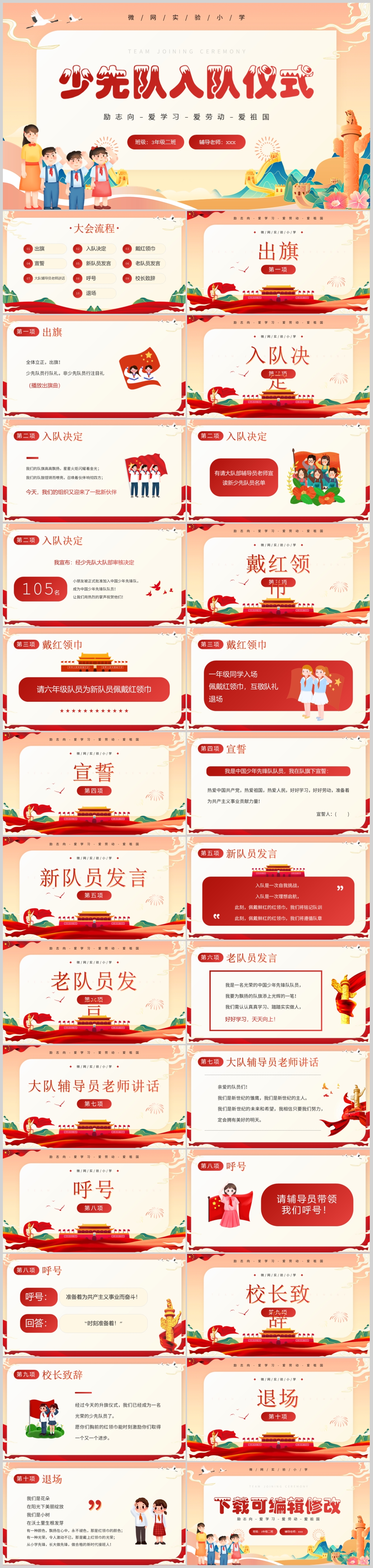卡通中小学生少先队入队仪式主题班会课件PPT模板