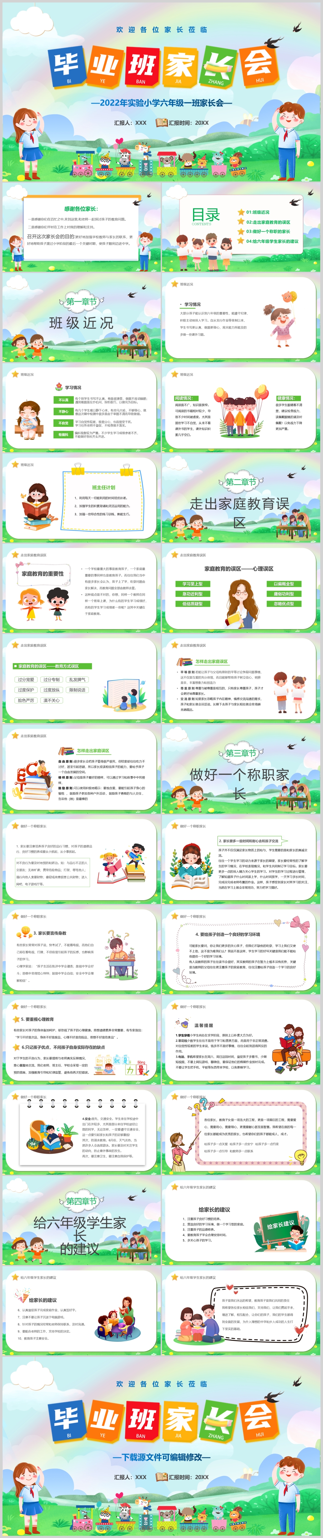 卡通中小学生幼儿园毕业班级家长会主题班会课件PPT模板