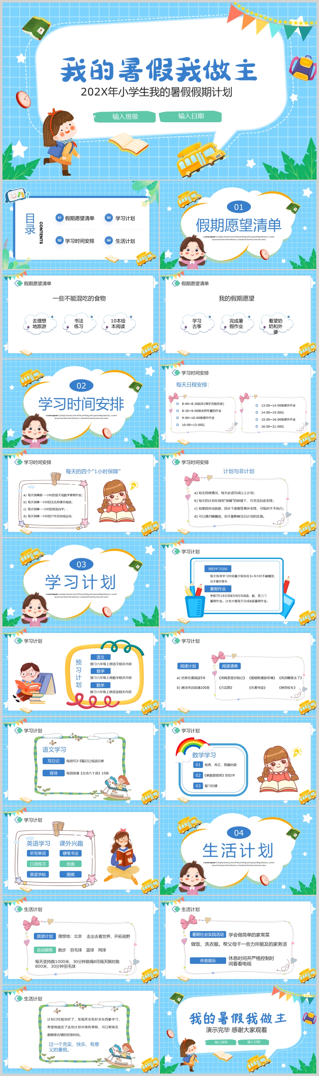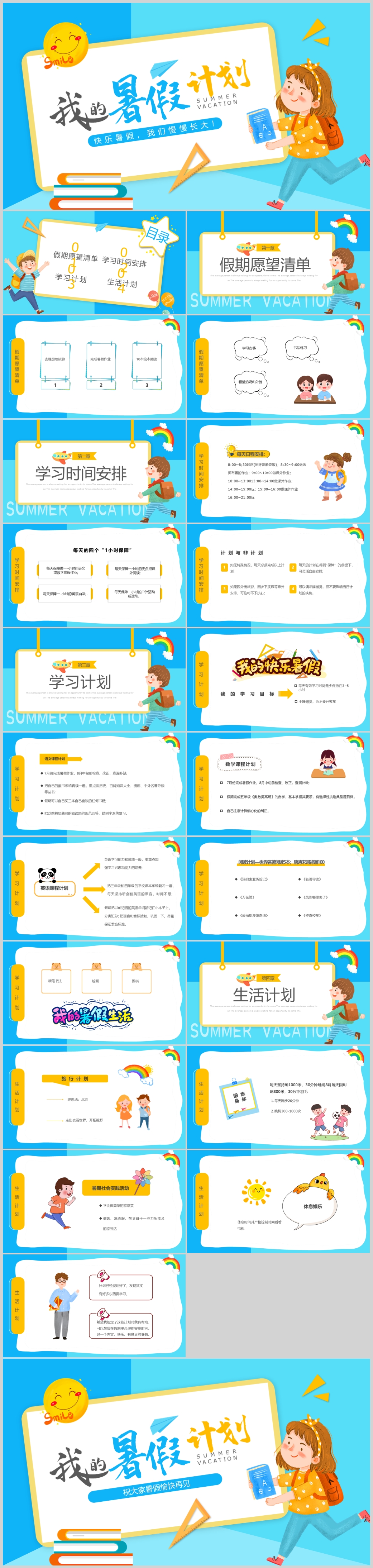 2022年幼儿园中小学生我的暑假假期生活暑假计划ppt模板