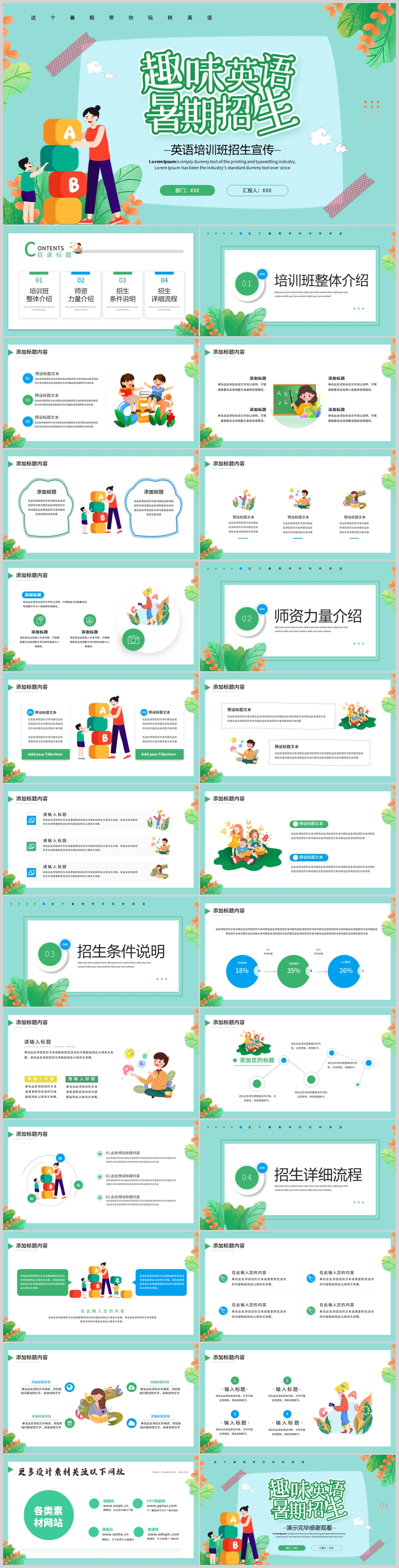 卡通夏日营暑假英语培训班招生宣传主题课件PPT模板
