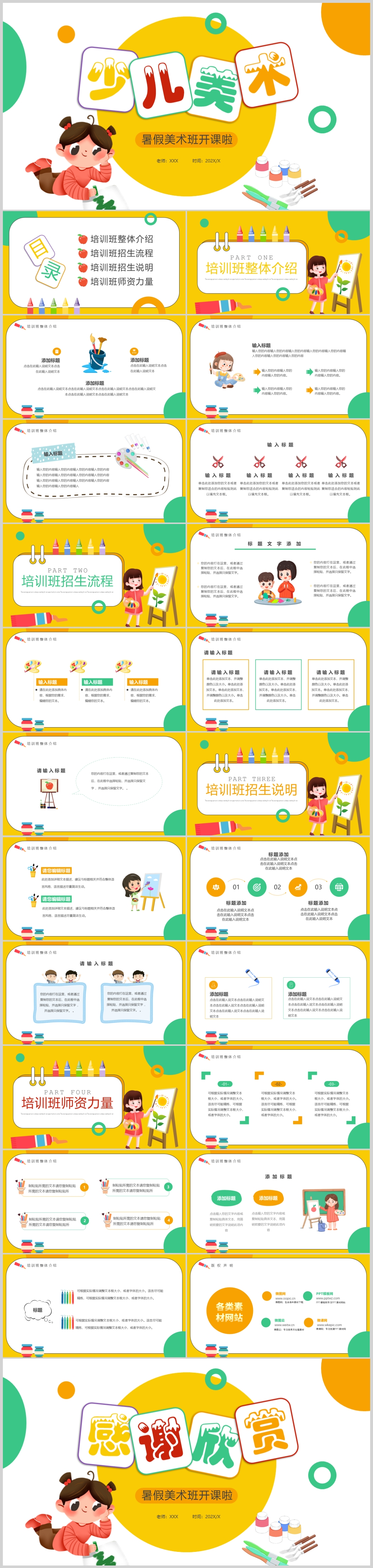 卡通暑假美术班开课啦暑假美术画画艺术班级招生PPT模板
