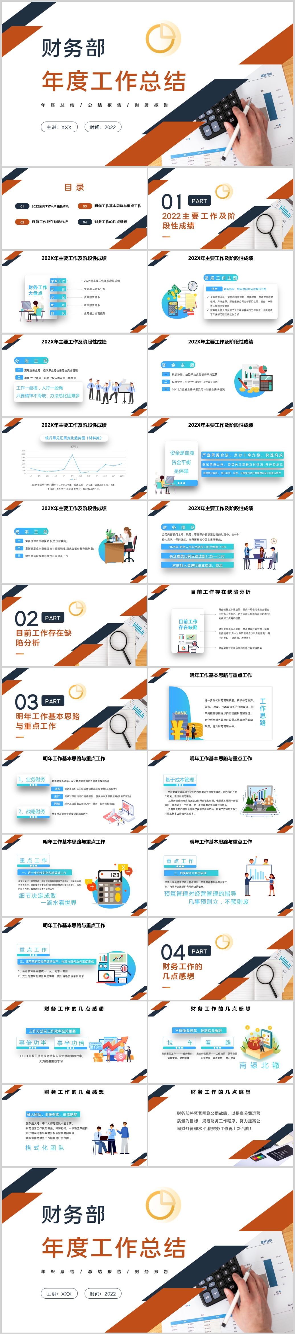 渐变扁平风财务经理出纳会计工作总结PPT模板
