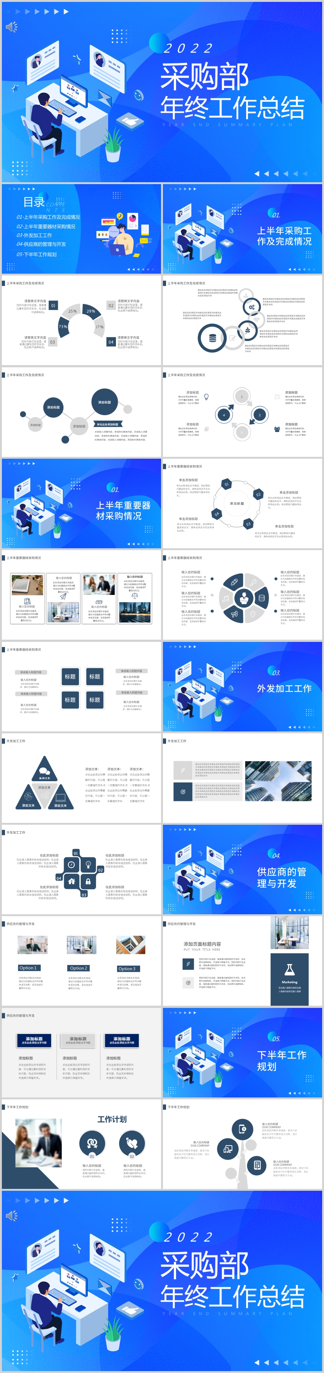 深蓝简约风采购部年度工作总结下半年工作计划PPT模板