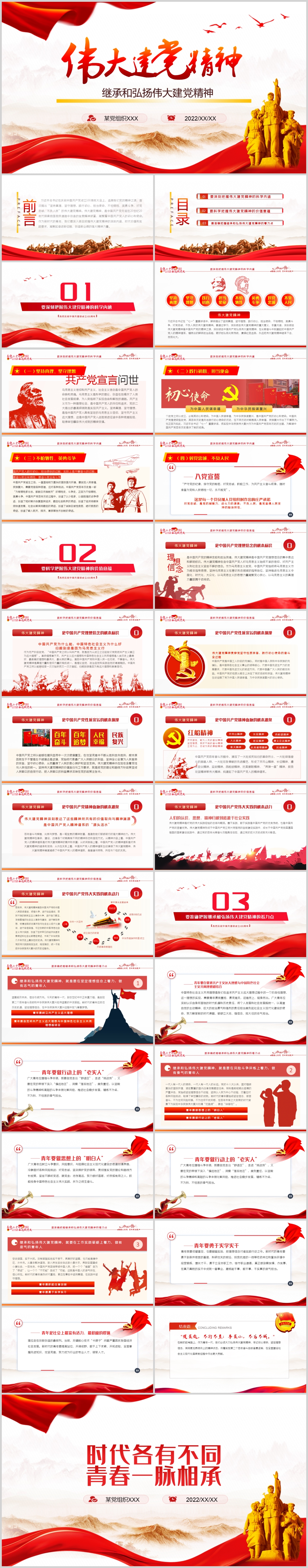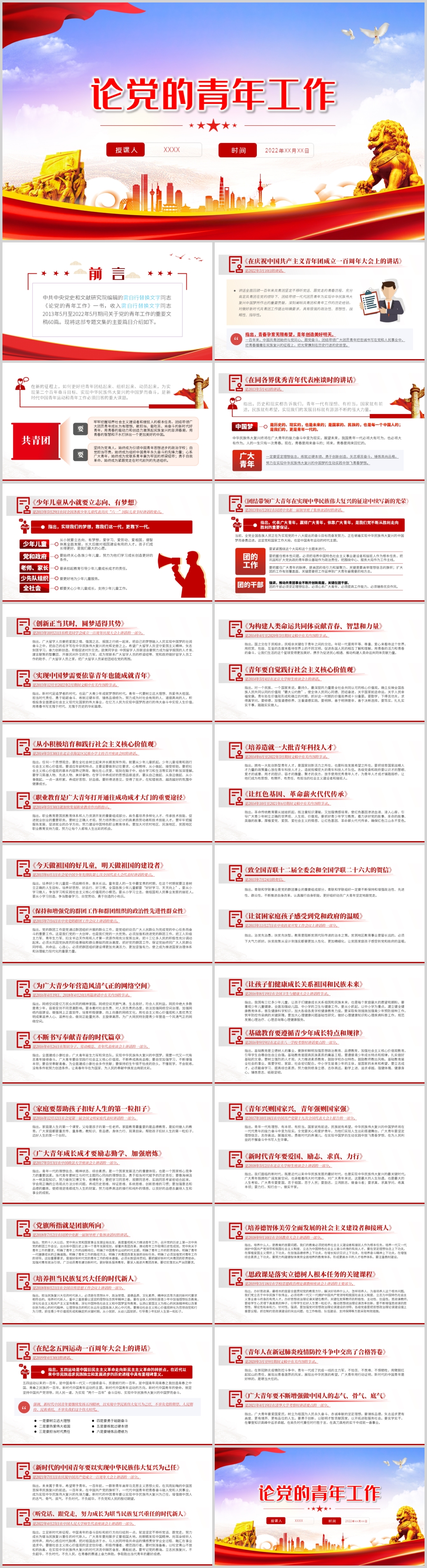 红色党政风论党的青年工作PPT模板《含WORD文件》