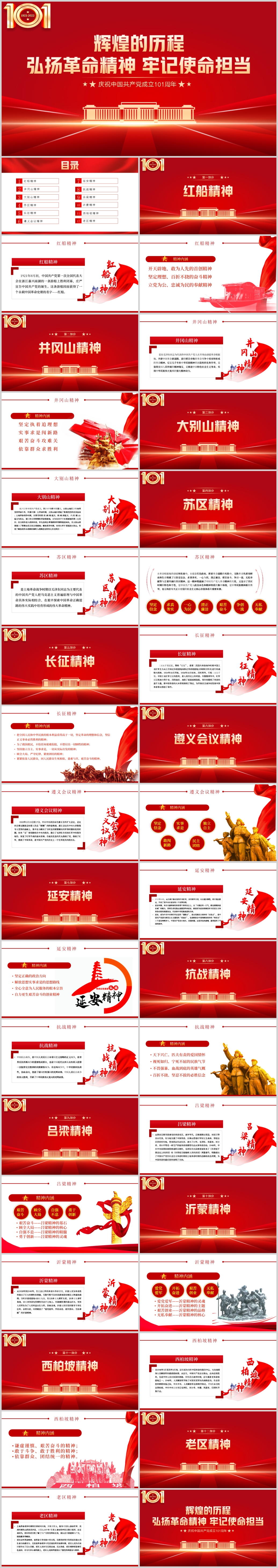 红色党政风庆祝中国共产党成立101周年专题党史PPT
