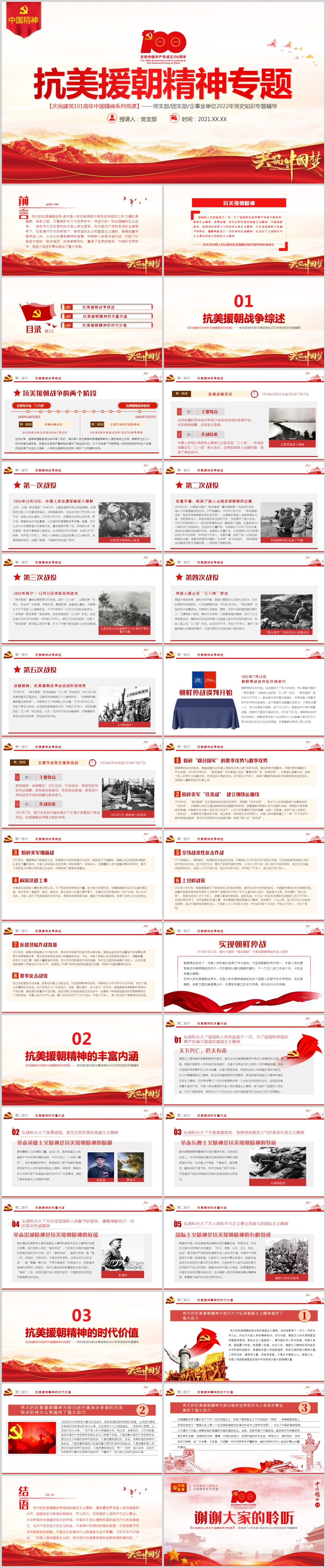 建党100周年弘扬伟大抗美援朝精神PPT《含WORD文件》