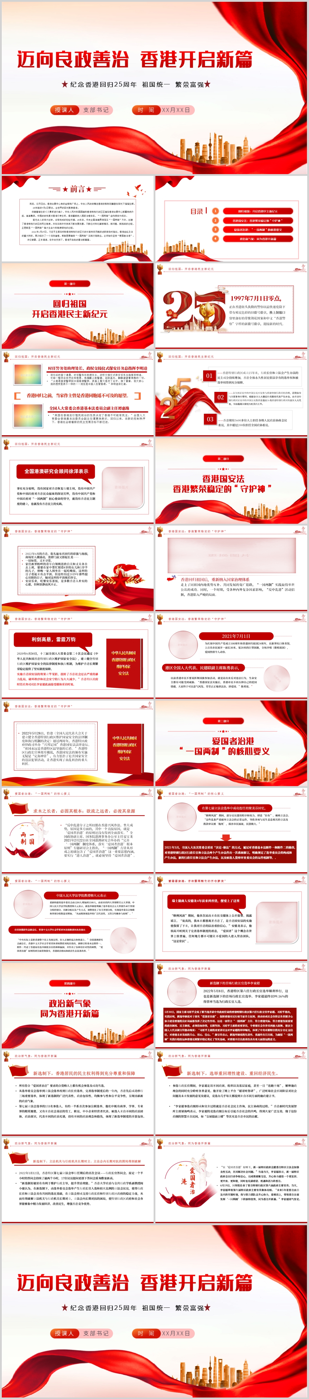 红色党政风热烈庆祝香港回归25周年专题党课《含WORD文件》