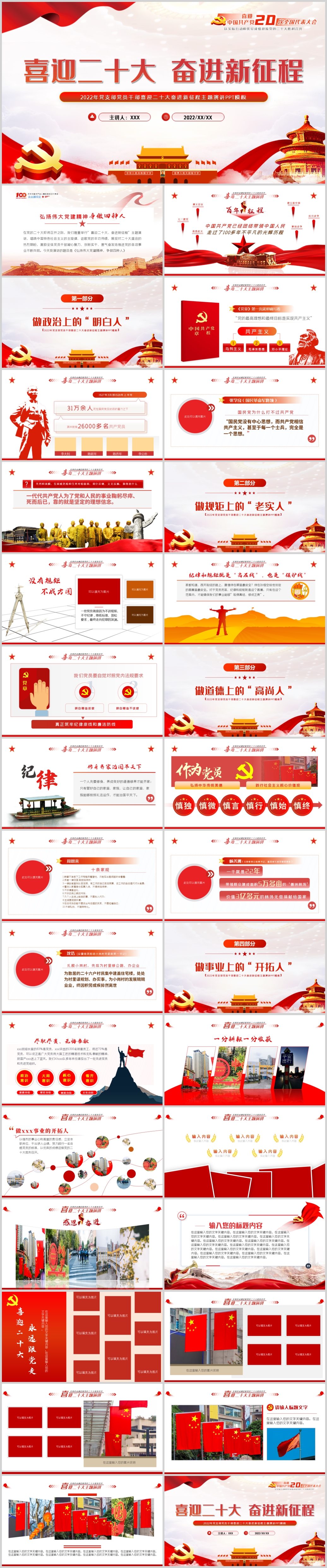 2022年党支部党员干部喜迎二十大主题演讲课件PPT模板《含WORD文件》