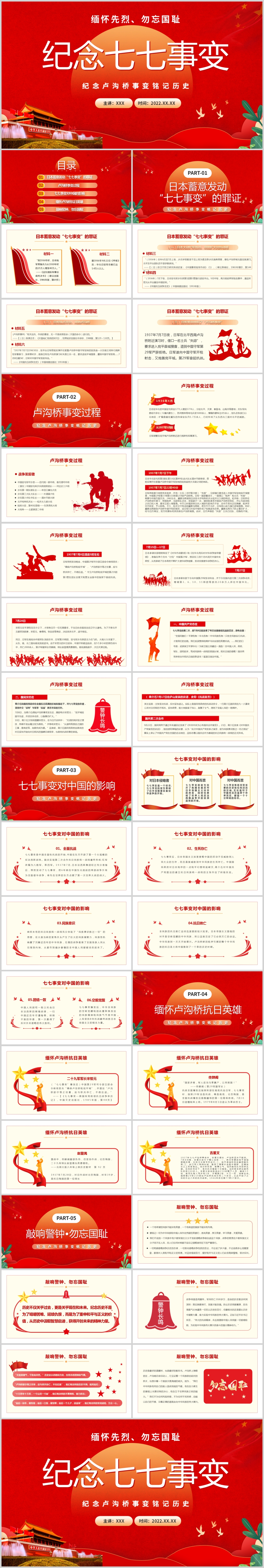 大气纪念卢沟桥事变铭记历史专题党课课件模板