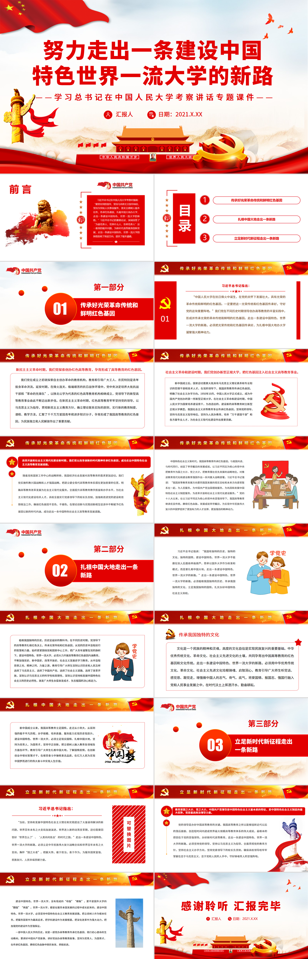 努力走出一条建设中国特色世界一流大学的新路PPT模板《含WORD文件》