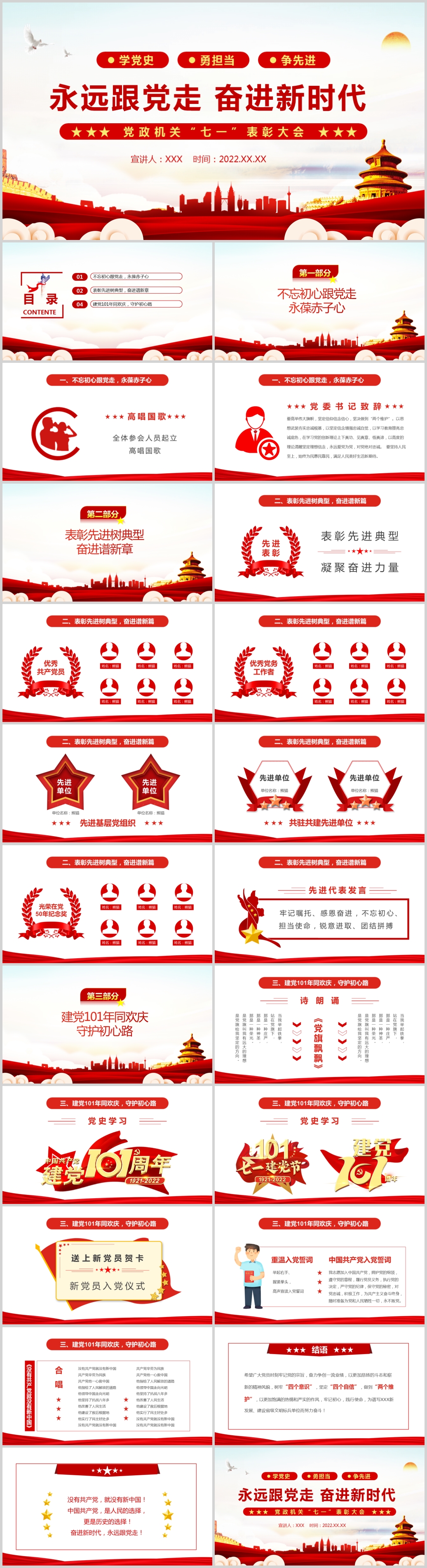 红色大气风党政机关七一表彰大会专题课件模板
