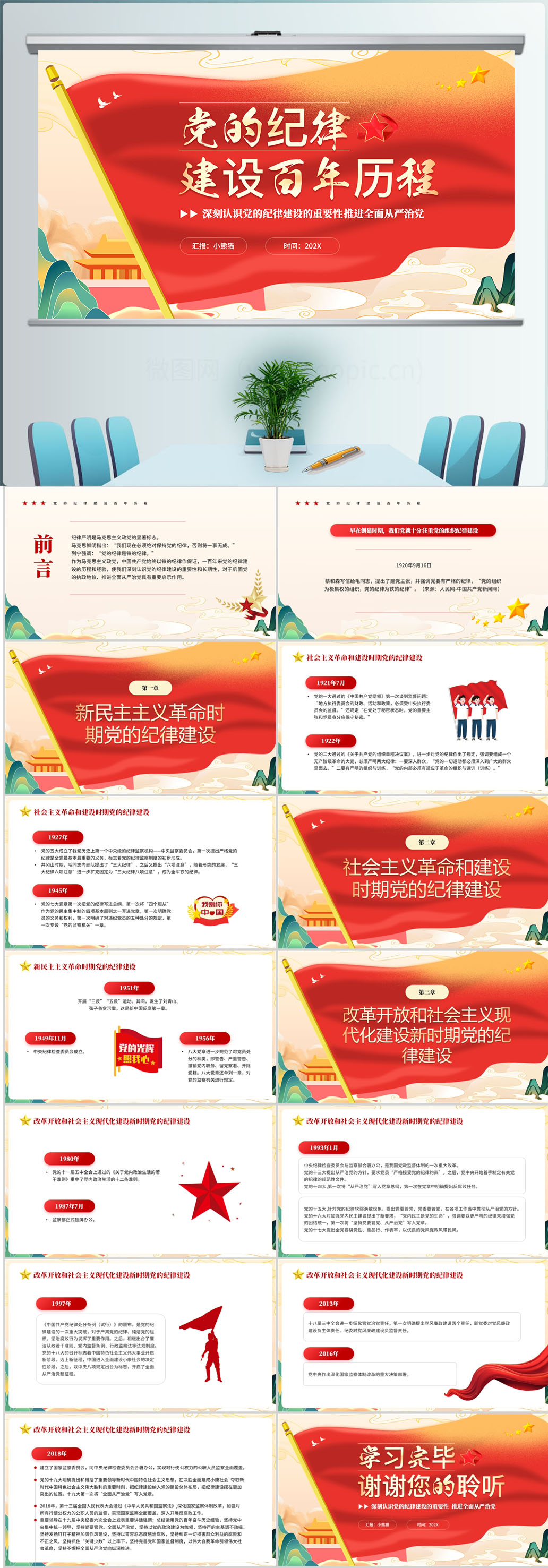 党的纪律建设百年历程推进全面从严治党党课ppt模板