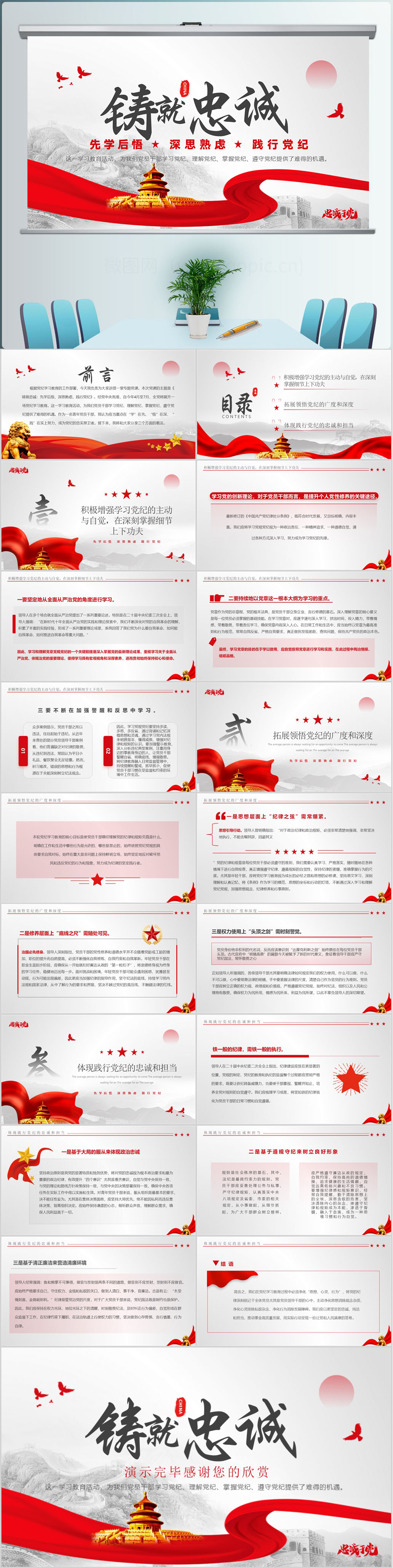 铸就忠诚先学后悟深思熟虑践行党纪主题党课ppt模板(内含WORD演讲稿)