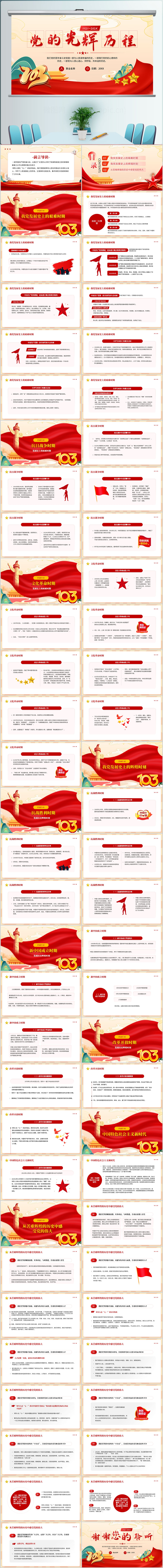 庆祝中国共产党成立103周年党史教育党课ppt模板