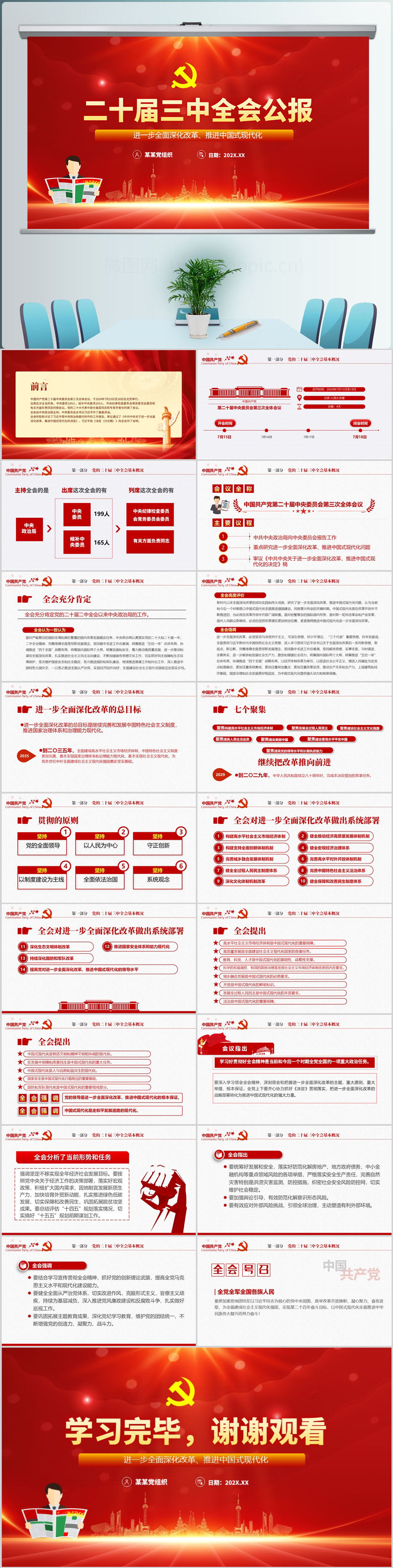 学习二十届三中全会公报原文解读ppt模板(内含WORD演讲稿)