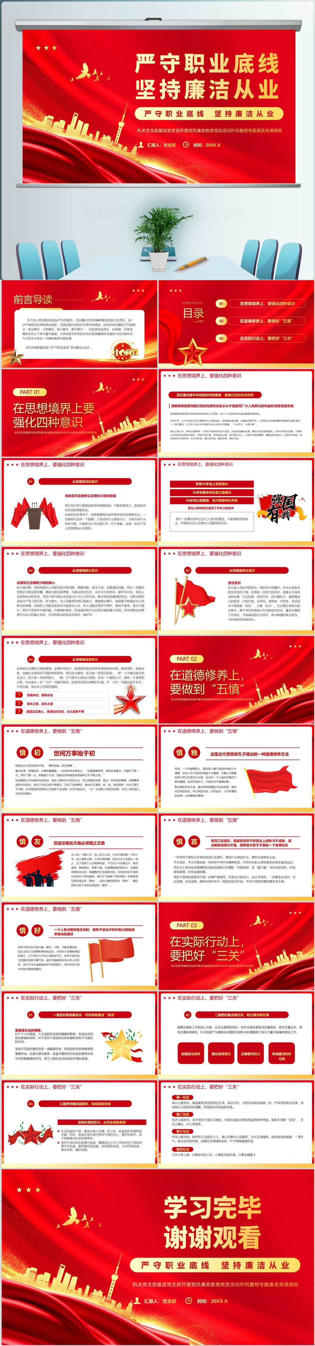 红色党政风严守职业底线坚持廉洁从业PPT模板