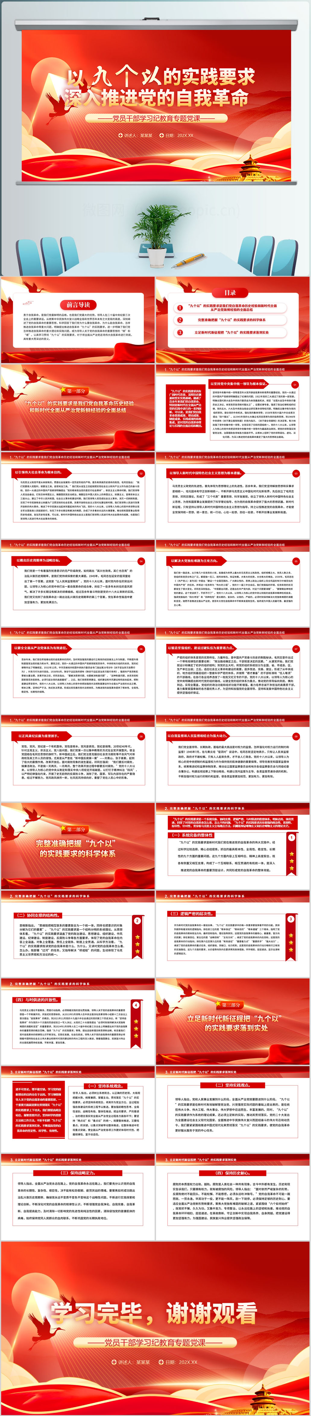 牢牢把握“九个以”的实践要求深入推进党的自我革命党课ppt模板(内含WORD演