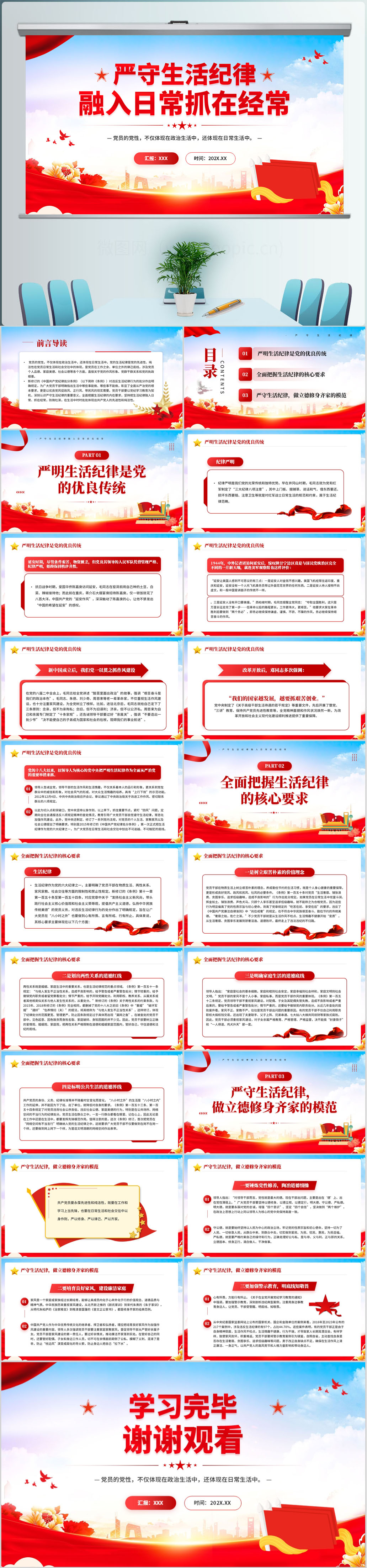 六大纪律党课之严守生活纪律融入日常抓在经常ppt模板