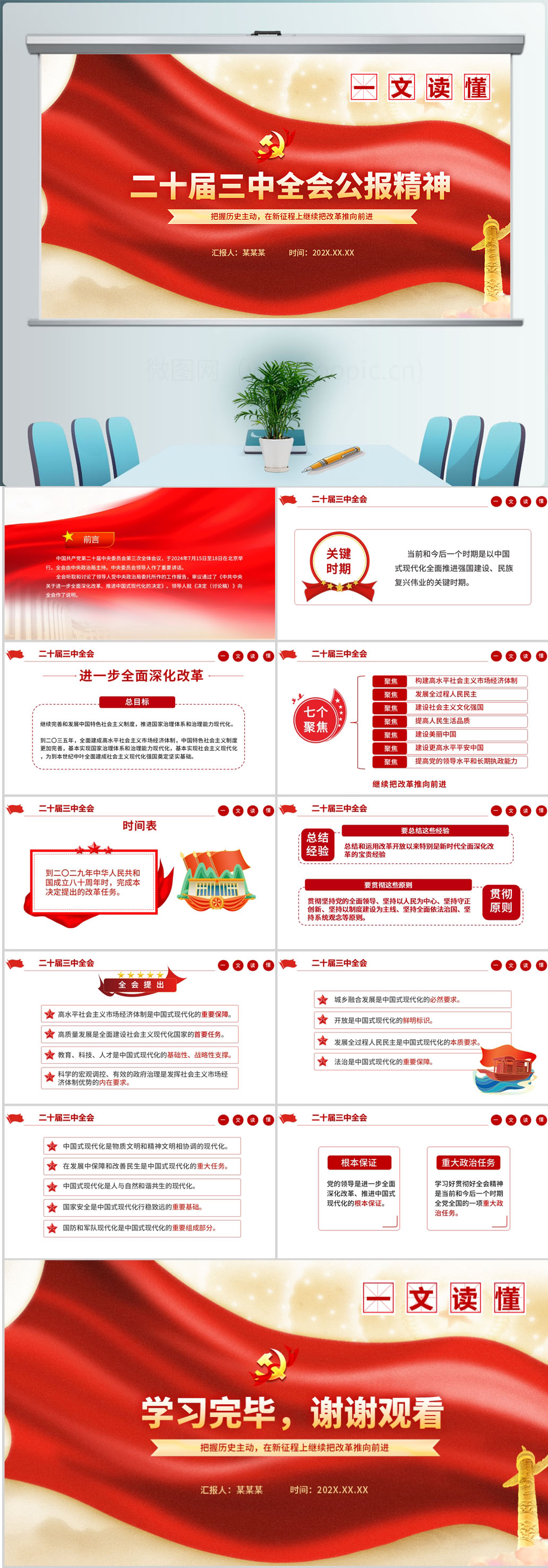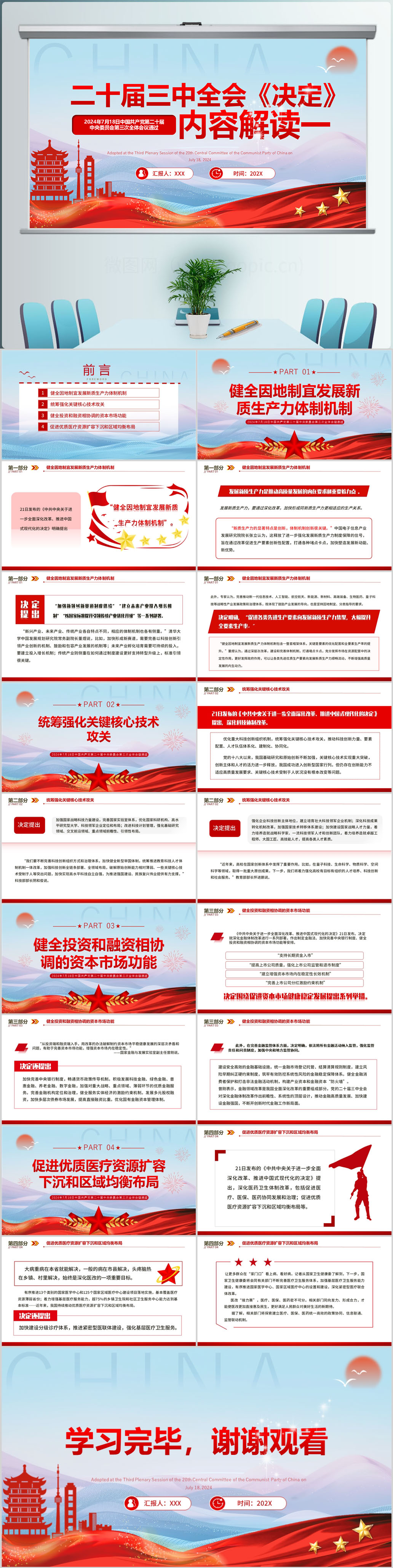 划重点学习二十届三中全会公报精神解读ppt模板(内含WORD演讲稿)
