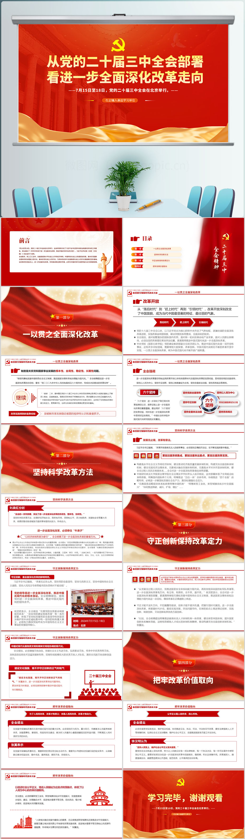二十届三中全会部署看进一步全面深化改革走向党课PPT模板